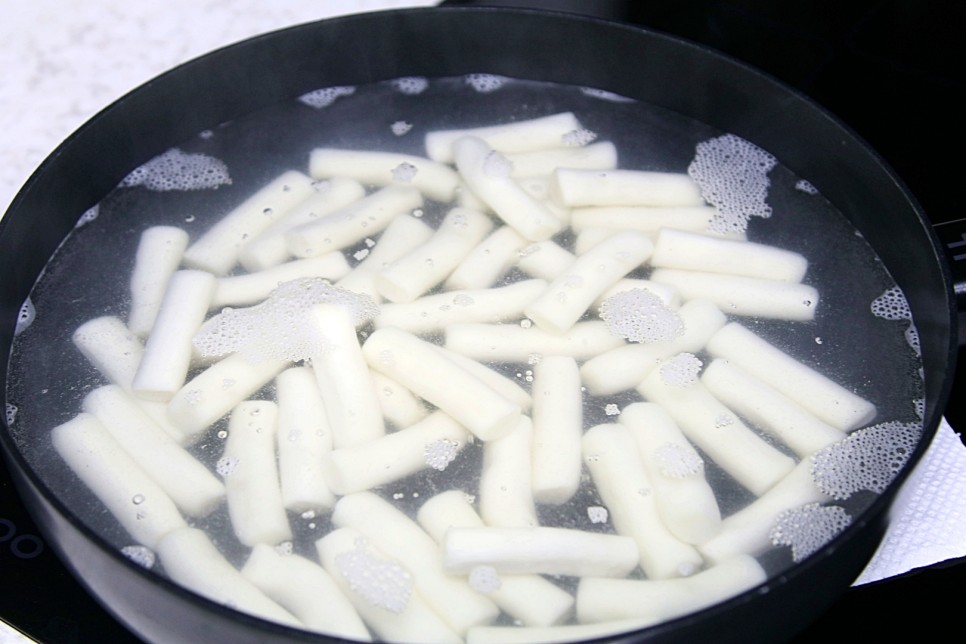 30분 후 찬물에 떡을 헹궈 탱글탱글하게 해 주세요