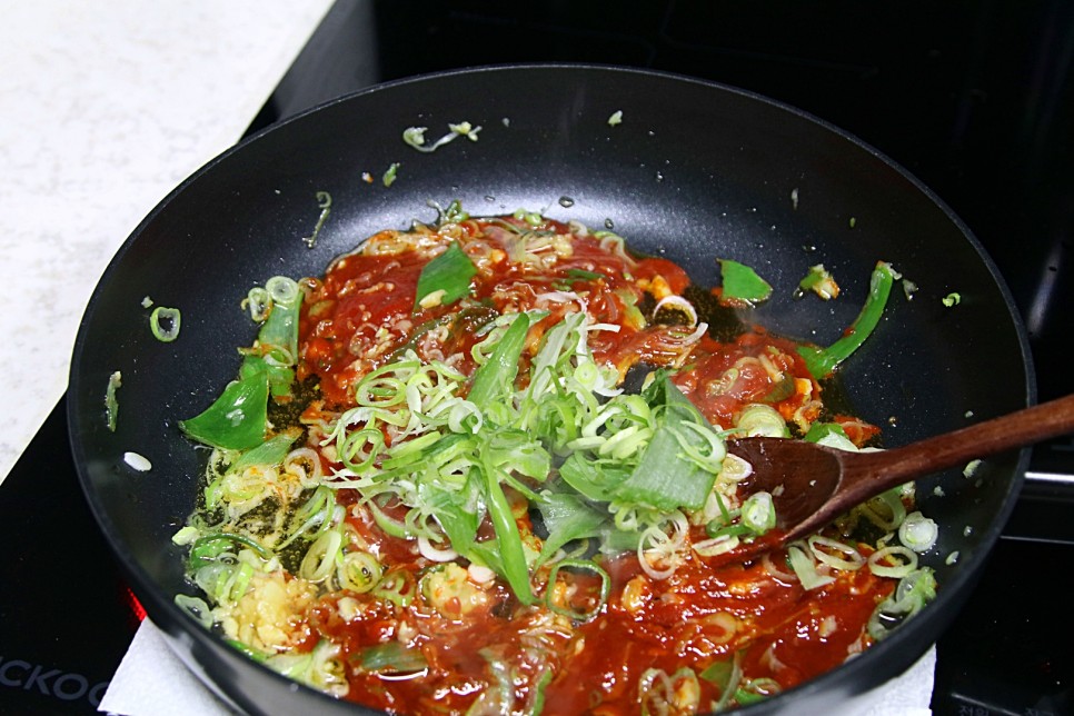양념이 뭉치니 않게 고루 저어 끓여야 합니다